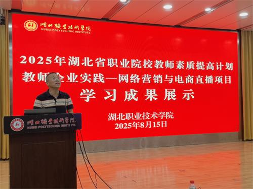 8月15日,湖北省2025年职业院校教师素质提高计划教师企业实践——网络营销与电商直播项目学习成果展示暨结业式在西区文博馆学术报告厅举行,校党委委员、副校长杨立明出席并讲话,授课专家代表黄享苟、我校继续教育学院院长丁浙英、财经与旅游学院党总支书记徐斌华等以及60名参训学员共同见证活动。活动由财经与旅游学院院长曹艳芬主持。