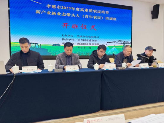 11月10日,由孝感市农业农村局、共青团孝感市委联合主办,湖北职业技术学院承办的“孝感市2025年高素质农民教育培育项目新产业新业态带头人(青年农民)培训班”在孝昌县农夫子教育培训中心开班。来自全市各县(市、区)的返乡创业大学生、青年家庭农场经营者及农村合作社骨干50余名青年农民齐聚一堂,开启为期10天的集中学习深造。共青团孝感市委副书记魏山山,湖北职业技术学院副校长杨立明,孝感市农业农村局社会事业促进科科长李浩,共青团孝感市委青发部负责人晏名波等出席活动,开班式由口腔医学院院长何伟主持。