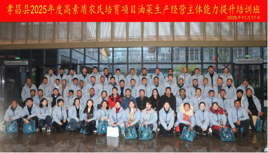 为深入贯彻中央一号文件关于“加强农民技术技能培训,壮大农村实用人才队伍”的部署要求,落实高素质农民培育计划中“聚焦粮油稳产保供”的重点任务,本次培训立足孝昌县油菜产业发展实际与生产经营主体需求,构建“综合素养 + 专业技能 + 能力拓展”三位一体培育体系。课程涵盖政策导向与市场分析、绿色高效生产技术、智慧农业装备应用、数字农业与 AI 技术园区实践等内容,邀请省市农业专家、院校教授、产业带头人现场授课,并组织学员赴鄂州、武汉 等地的现代农业科技示范基地开展实地研学。