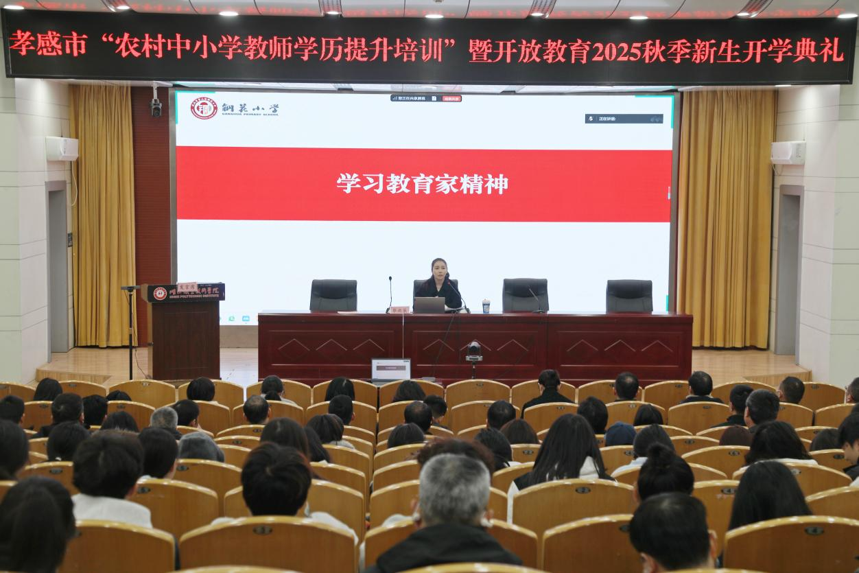 (本网通讯员 万飞 唐熙隆)2025年11月22日上午,孝感市“农村中小学教师学历提升培训”暨开放教育2025秋季新生开学典礼在湖北职业技术学院西校区文博馆学术报告厅隆重举行。湖北职业技术学院副校长杨立明、孝感市教育局相关负责人出席,学校开放教育学院教师及全体新学员参加开学典礼。典礼采取线上线下同步进行的方式,覆盖全市农村中小学参训教师及开放教育新生,实现了跨区域、多终端的实时参与。