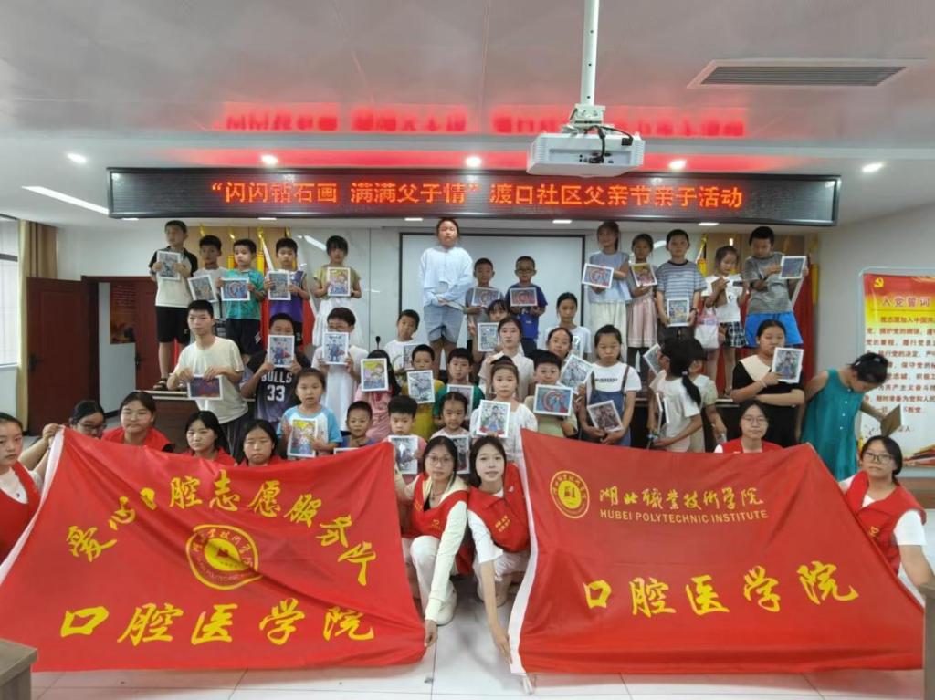 6月14日,口腔医学院爱心口腔志愿服务队前往渡口社区,积极参与并协助举办了“闪闪钻石画,满满父子情”父亲节亲子活动。