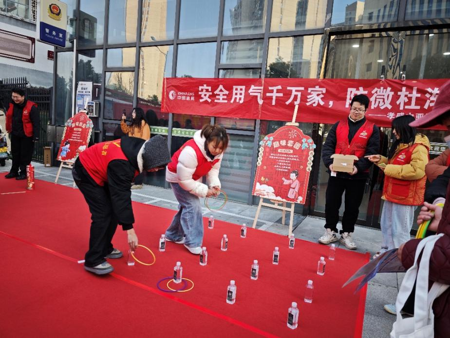除了口腔健康服务,集市还设置了非遗文化、文明法治宣传等特色专区,营造出浓厚的新春氛围。非遗文化专区内,非遗雕花剪纸、写春联、投壶套圈等民俗活动吸引了不少居民参与,“爱心口腔”的志愿者们也主动搭把手,帮忙整理春联、引导现场秩序,让文化体验更顺畅;文明法治宣传专区里,社区网格员、民警向居民普及文明城市知识与防诈骗常识,志愿者们见状也主动协助分发宣传资料,助力提升居民安全意识与文明素养。