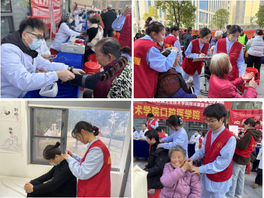精诚康复志愿服务队学生在党员教师的现场指导下,为社区居民提供拔罐、艾灸、针刺、推拿、理疗等康复服务。教师们一边示范操作要领,一边讲解病症机理,将课堂知识转化为实际技能,让学生在服务中感悟医者仁心。患有肩周炎的王阿姨感慨,有学生认真按摩缓解疼痛,有老师细心观察耐心指导,志愿服务是既暖心又专业。师生们以娴熟的手法、耐心的讲解,帮助群众缓解肩颈腰痛、关节不适等问题,传递“防重于治”的健康理念。不少居民在接受服务后夸赞,精诚康复志愿服务队的师生们技术好、态度好,实实在在为群众做好事。