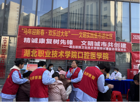 1月13日上午,我校精诚康复志愿服务队走进孝感市孝南区文昌阁社区,开展“温暖迎新送健康——我在新时代文明实践站迎新年”文明实践集市活动。活动紧扣“精诚康复树先锋,文明城市共创建”主题,将党员下沉、专业实践、志愿服务与文明创建深度融合,以专业暖心的服务赢得社区居民广泛好评。