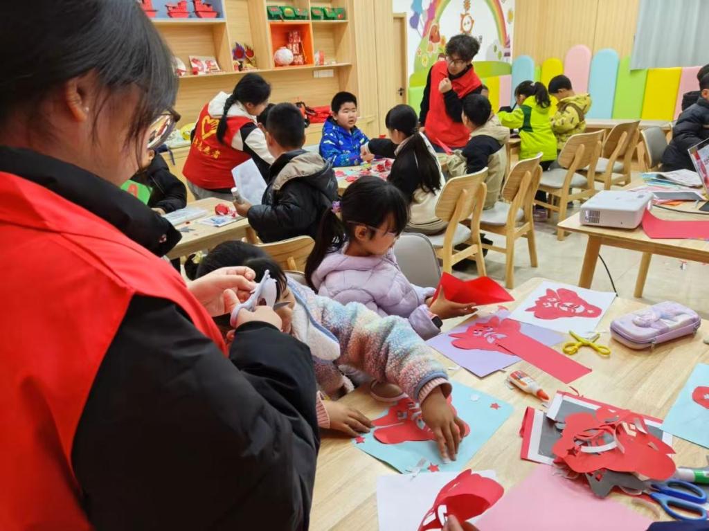 剪纸是中华优秀传统文化的瑰宝,志愿者将剪纸艺术与雷锋精神相结合,让传统文化与红色文化碰撞出别样火花。志愿者刘好为孩子们详细讲解剪纸技巧与方法,一步步示范折叠、裁剪要领,耐心解答孩子们的疑问。随后,在志愿者们的悉心指导下,孩子们手持彩纸、剪刀,专注创作雷锋形象剪纸,小手灵活穿梭、彩纸层层翻转,从生疏尝试到熟练操作,一张张生动的雷锋剪纸在孩子们手中慢慢成型。