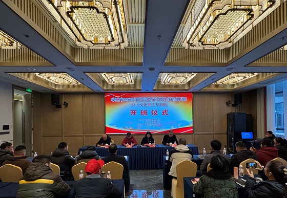 1月13日上午,孝感市2025年度高素质农民教育培育项目乡土文化能人培训班在孝昌县农夫子教育培训基地正式开班。本次培训由孝感市农业农村局、孝感市文化和旅游局联合主办,湖北职业技术学院承办,来自全市各县、市、区的60名非遗传承人、农文旅从业者、乡村文化骨干参训。孝感市农业农村局农村社会事业促进科科长李浩,建筑工程学院党总支书记艾欢、继续教育学院副院长汪向东出席开班活动。活动由建筑工程学院副院长王菲主持。