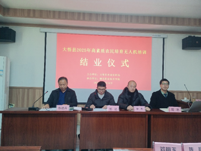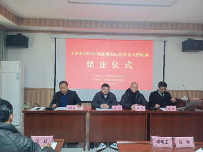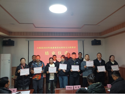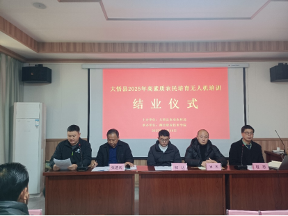 12月18日,由大悟县农业农村局主办、我校教育与艺术学院承办的“大悟县2025年高素质农民教育培育项目农机手(无人机)专题培训班”结业仪式在大悟县新城镇金岭村举行。50名参训学员圆满完成各项学习任务,顺利结业,并成功考取农用无人驾驶航空器操作证,为大悟县现代农业发展注入了新的技术动能。