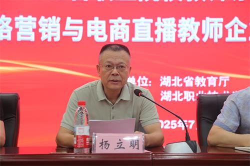 熊传兵代表合作企业介绍了电商产业变革的新形势,AI引领电商直播产业的新动态,与湖北职业技术学院深化校企合作、产教融合,共建新媒体电商产业学院、电商产教融合直播基地、国家区域型开放产教融合实践中心,推进人才培养模式改革创新的经验做法,表示在本次培训中,将更加突出“实战”,落实好培训工作要求。